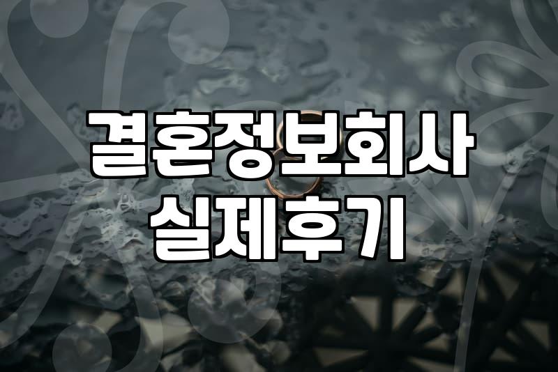 현실적인 조언: 결혼정보서비스 이용의 함정
